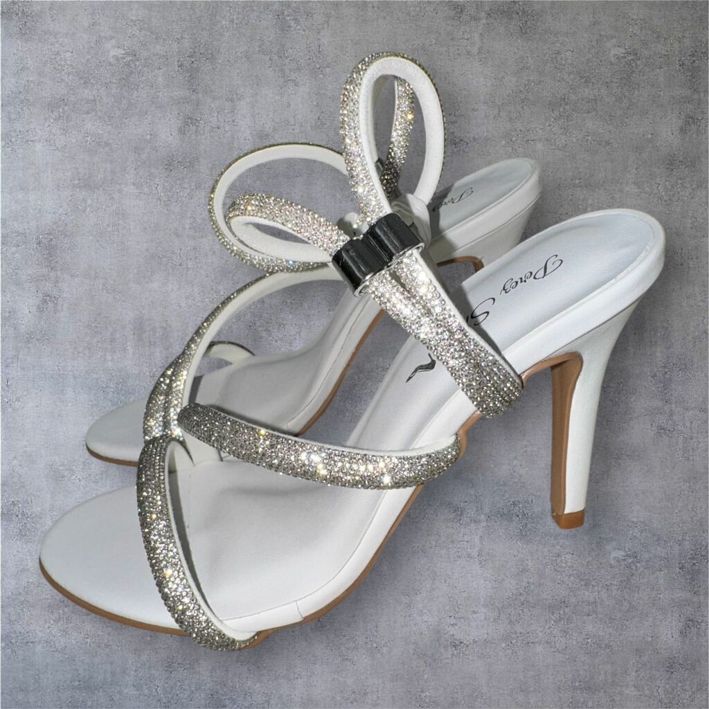 Eleve seu estilo com a Sandália Branca com Salto Fino e Tiras em Strass. Perfeita para brilhar em qualquer evento especial!